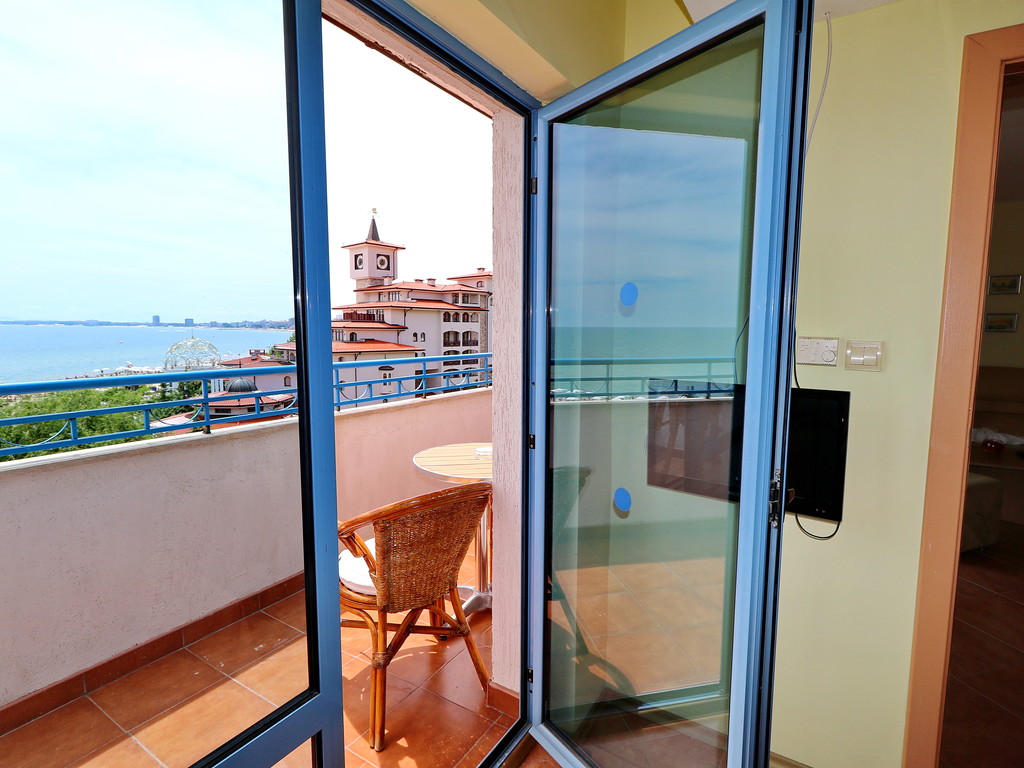 Стаите сa климатизирани, с телевизори, хладилник, баня със сешоар и тераса с гледка към морето.